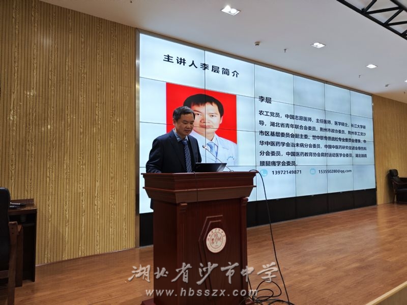 啟動儀式結(jié)束后,市中醫(yī)醫(yī)院骨科副主任兼骨科一病區(qū)主任李層給沙市中學(xué)師生帶來了一場精彩紛呈的中醫(yī)藥文化講座,李醫(yī)生以“走進(jìn)中醫(yī)藥、認(rèn)識中醫(yī)藥”為主題圍繞什么是中醫(yī)藥、中醫(yī)藥與我有關(guān)嗎、為什么中醫(yī)藥是打開中華文明寶庫的鑰匙、這節(jié)課我收獲了什么進(jìn)行了細(xì)致全面地講解。