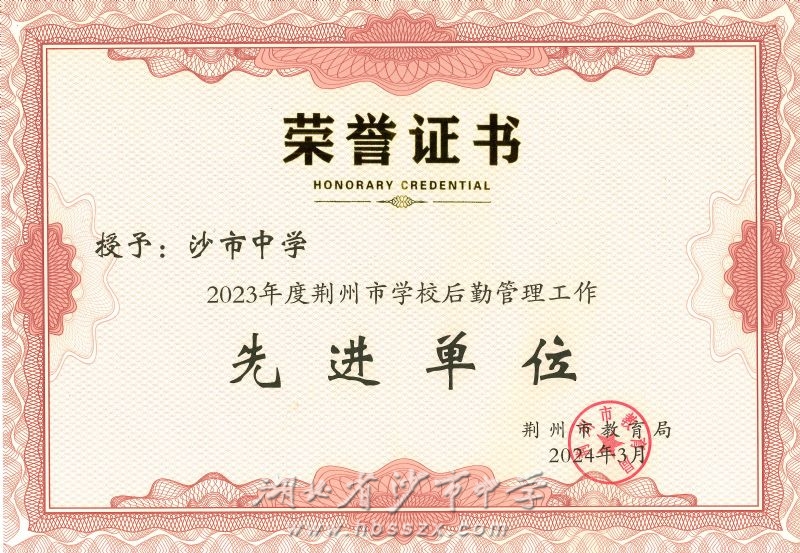沙市中學(xué)獲評(píng)2023年度荊州市學(xué)校后勤管理工作先進(jìn)單位