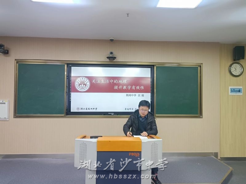 荊州中學江挺老師進行了《關注生活中的地理,提高教學有效性》的專題報告。江老師從課堂教學、校本課程、地理實踐、試題命制四個角度對高三復習進行了深入分析。
