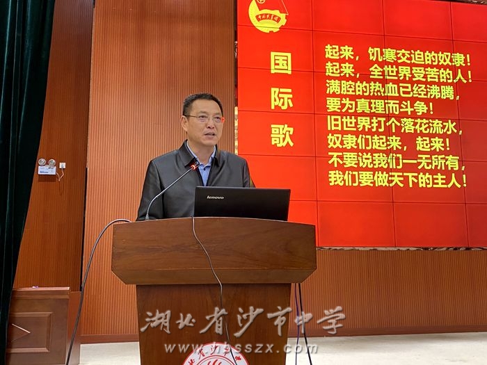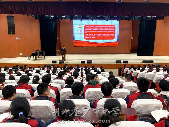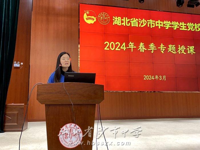 春風送暖,惠風和暢。2024年3月25日晚六點半,沙市中學學生黨校2024年春季學期首次專題授課在學術報告廳舉行。學校黨委書記熊禮才以“涵養家國情懷,共謀民族發展”為題給同學們帶來了一場精彩生動的黨課,團委副書記黃嘉懿主持活動,黨章班、馬培班全體學員參加學習。