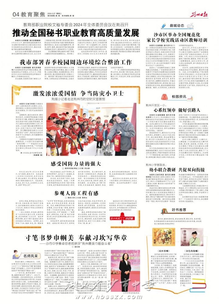 《荊州日報》2024年3月27日報道我校秦卓瓊老師獲評"荊州最美巾幗奮斗者"
