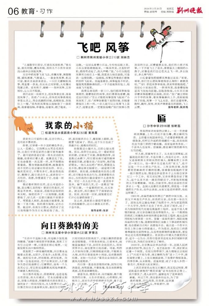 《荊州晚報》2024年3月29日發表我校"清廉校園"建設征文獲獎作品