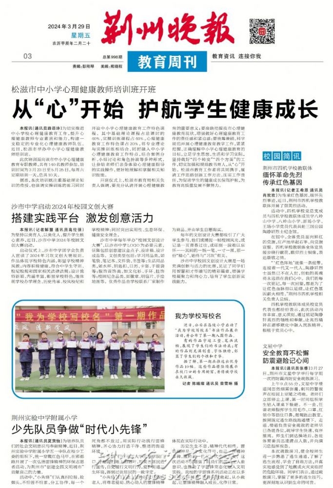 《荊州晚報》2024年3月29日報道我校啟動校園文創設計大賽