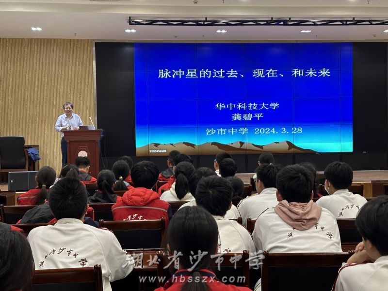 3月28日下午,湖北省英才計劃導師、華中科技大學龔碧平教授親臨我校習坎講壇,在綜合樓二樓會議室帶來了題為《脈沖星的過去、現在和未來》的專題講座。沙市中學黨委副書記、校長徐善慧,教師發展中心副主任杜景泉、高一年級3、4、5、6班全體學生、參與2024年英才計劃的16名高一學生和部分參與2023年楚才計劃的學生參加了此次講座。