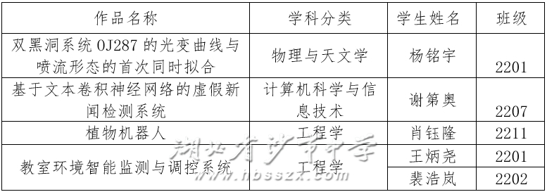 我校參賽學生合影左起肖鈺隆、謝第奧、王炳堯、裴浩嵐、楊銘宇 全省中小學共113件作品(157人)入圍此次終評,其中荊州市8件作品(9人)。我校有4件作品(5人)入圍此次終評,參賽數量排名全省第二,荊州市第一。