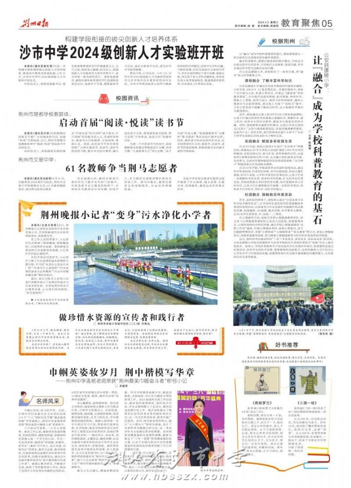 《荊州日報》2024年4月3日報道我校2024級創新人才實驗班開班