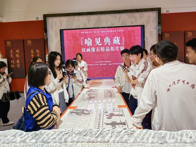 在“喻見典藏”漢畫像石精品拓片展,同學(xué)們熱情高漲,與志愿者積極交流,氛圍融洽。