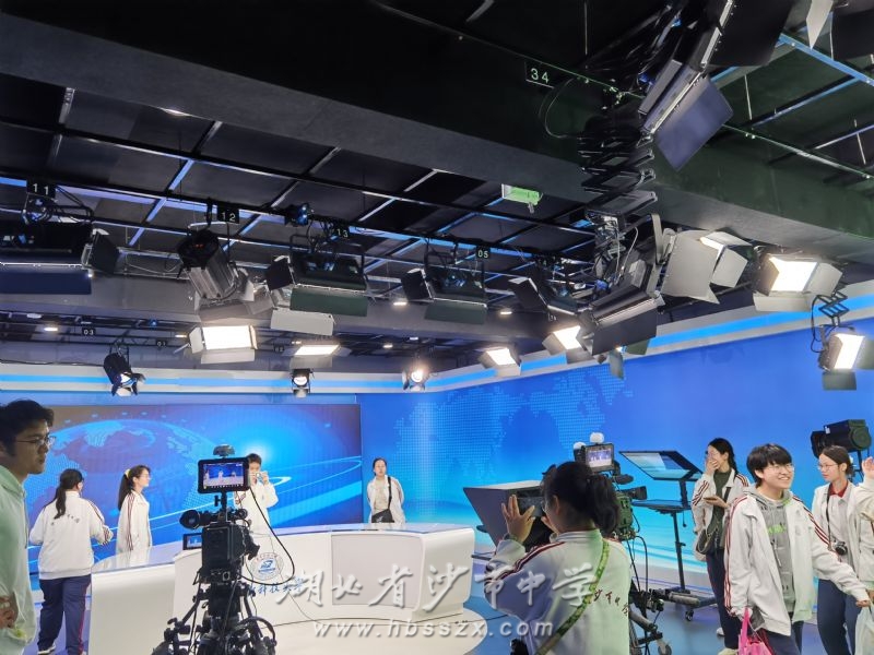 在新聞與信息傳播學(xué)院演播室,同學(xué)們近距離體驗(yàn)新聞主播的工作。