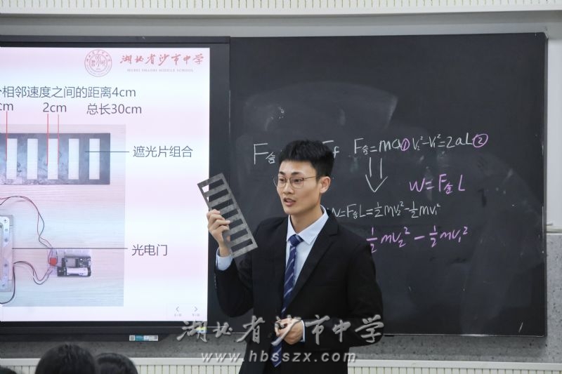 沙市中學陳志為老師賽課 陳志為老師的物理課堂生動詮釋了“創新教學”的理念。首先通過高空拋物的情景生動引入動能概念,學生通過實驗感受動能,類比推導動能表達式。為進一步加深學生的理解,陳老師還設計了自制光電門實驗,讓學生親自驗證動能定理。最后,學生利用動能定理分析并解釋生活中的打夯現象,將理論知識與實際問題相結合,有效地提升了學生的科學思維和實踐能力。