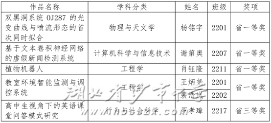 近日,從湖北省青少年科技中心傳來喜訊,沙市中學(xué)再創(chuàng)輝煌,在日前結(jié)束的湖北省第38屆青少年科技創(chuàng)新大賽中,喜獲省一等獎4項(xiàng),省三等獎1項(xiàng)。其中,2201班楊銘宇同學(xué)獲得了代表湖北省參加“第38屆全國青少年科技創(chuàng)新大賽”的資格,將和全國其他優(yōu)秀作品一起角逐更高等級的獎項(xiàng)。