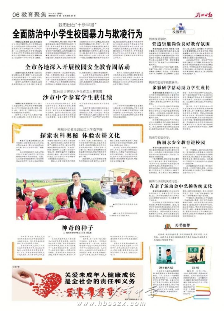 《荊州日報》2024年4月24日報道我校在第24屆世界華人學生作文大賽中獲得優異成績