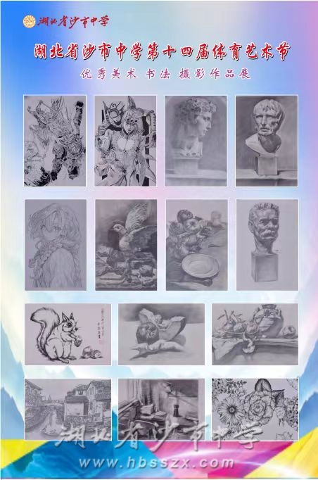 美術攝影作品展參賽作品題材豐富、形式多樣、風格鮮明。書法作品中,有工整雋秀的行楷,剛勁古樸的隸書;繪畫作品中,素描、水彩、版畫、色粉、國畫、水粉,包羅萬象、異彩紛呈;還有展現校園新風貌的藝術攝影作品。