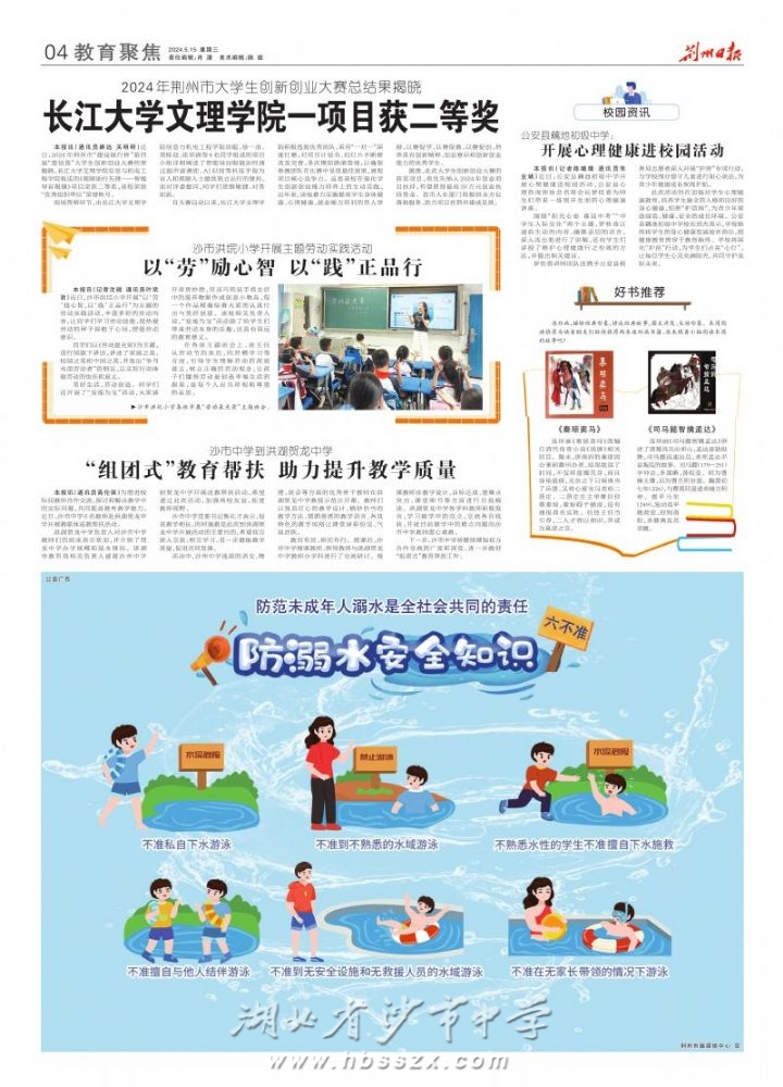 《荊州日報》2024年5月15日報道我校幫扶洪湖賀龍中學