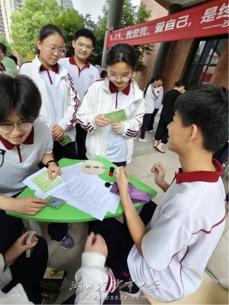 5月20日周一上午進行了以心理健康為主題的國旗下講話,強調了心理健康對每個人的重要性,以及在日常的學習生活中學生們可以如何做到愛自己。5月20日下午,525心理游園會活動在藝術樓旁舉行。活動開始前由心理輔導中心的老師對高一心理委員、心理社團成員們進行活動職責任務培訓。整個游園會主要包含4個區(qū)域,分別是“自我探索區(qū)”、“情緒體驗區(qū)”、“人際互動區(qū)”、“大腦開發(fā)區(qū)”。同學們現(xiàn)場領取門票,每完成一個活動可得到一個蓋章,得到不同數(shù)量的蓋章,可兌換不同的小獎品,活動剛剛開始,游園會的起點就排起了長隊。