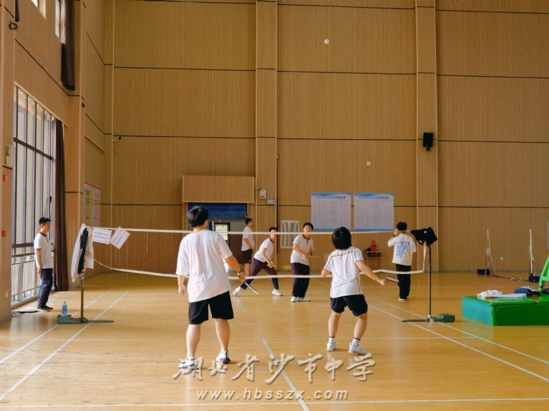 羽毛球場上,同學們身姿矯健,跑動、跳躍、吊球、扣球讓人目不暇接。
