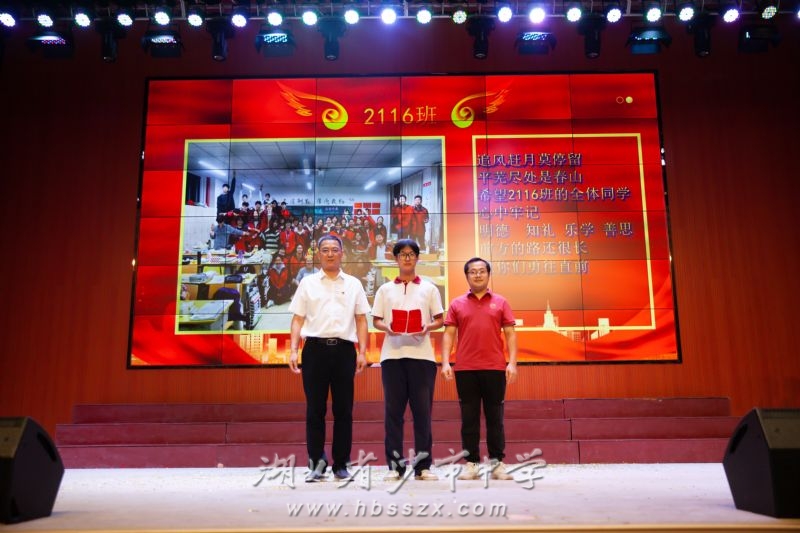道阻且長,行則將至;行而不輟,未來可期。學校黨委書記熊禮才為高三團學會代表和高三年級各班頒發畢業證書。各班班長在班主任陪同下依次上臺,鄭重地從熊禮才書記手中接過畢業證。