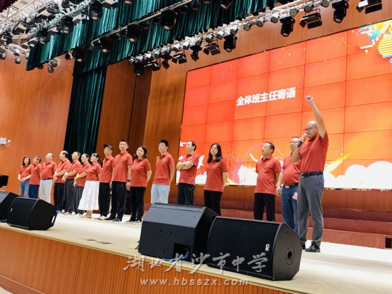 2022級十七個班的班主任統一穿著紅色T恤登臺為同學們寄語。老師們飽含熱情地引經據典,金句頻出,鼓勵同學們奮戰高三,迎向自己的開掛人生。