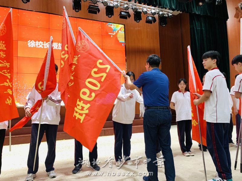 徐善慧校長登臺為各班級授旗。最后,在鮮艷的紅旗下,全體同學大聲宣誓:2025,我們必定成功!2025,我們必定輝煌!
