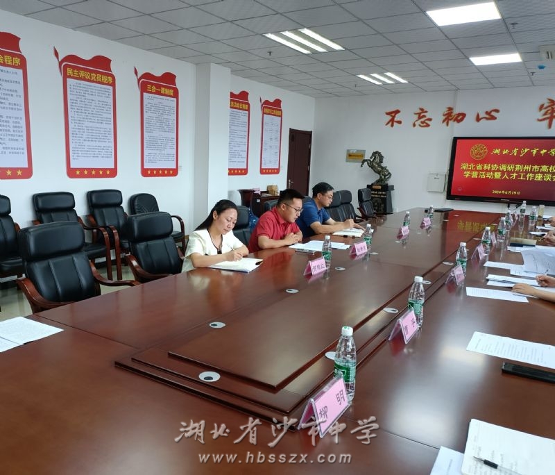 6月19日下午2點,湖北省科協黨組成員、副主席王新云帶隊調研荊州市高校科學營活動暨人才工作,并在沙市中學召開座談會。