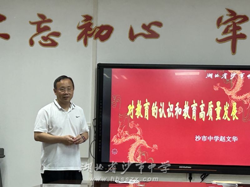 沙市中學(xué)黨委委員、副校長趙文華授課 最后,學(xué)校黨委委員、副校長趙文華以《對教育的認(rèn)知和教育高質(zhì)量發(fā)展》為題,向老師們講述了教育的真正內(nèi)涵,并從落實五育并舉、促進(jìn)教育公平、推進(jìn)教育雙減、培養(yǎng)拔尖人才等方面指明了教育高質(zhì)量發(fā)展的具體要求。