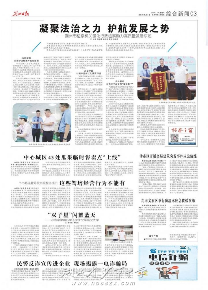 《荊州日報》2024年7月13日報道我校兩學子榮錄空軍航空大學