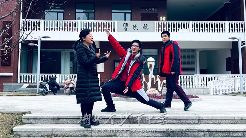 韓汶霖(中)與班主任李艷(左)等在習坎樓前 7月11日,沙市中學收到了一份特別的喜報,2117班韓汶霖同學在激烈的競爭中脫穎而出,成功被中國美術學院戲劇與影視學類(美術類)專業錄取。