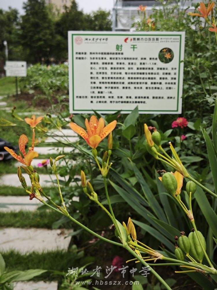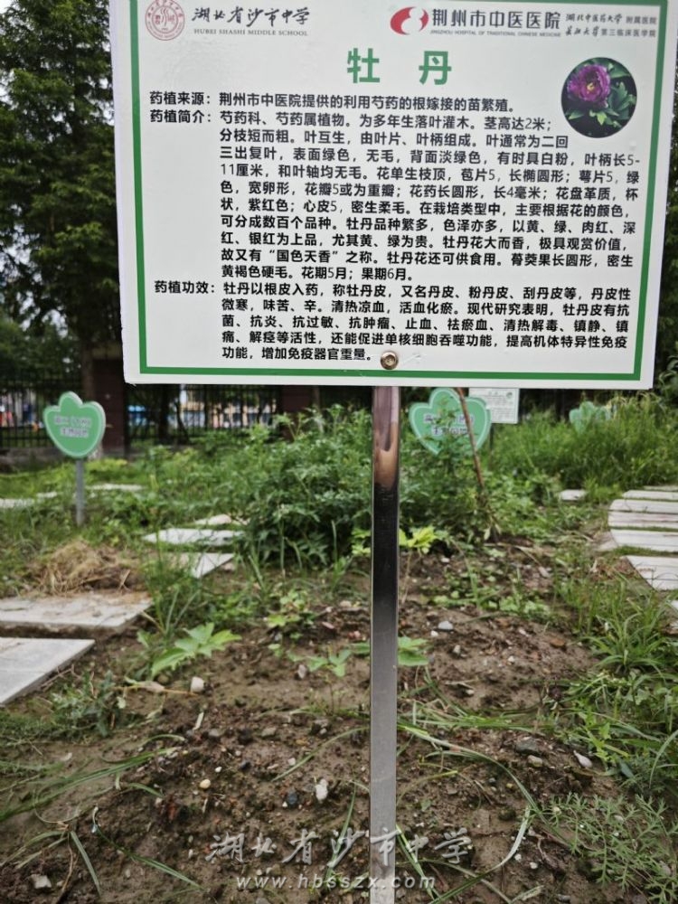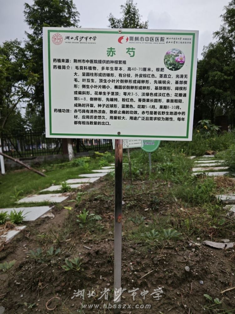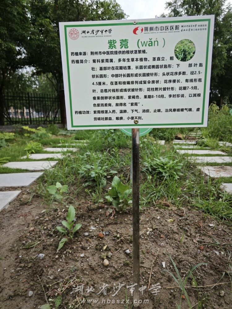 在中藥種植區域,沙市中學利用與荊州市中醫醫院共建的“校園中醫藥文化基地”的良機和優勢,在荊州市中醫醫院的指導和幫助下栽種了射干、艾草、丹參、牡丹、赤芍、紫菀等特色藥用植物。每塊藥植種植區域旁樹立了展示牌,詳細介紹了藥植的來源、簡介和功效。中醫藥文化是中華民族的瑰寶,通過對藥植的種植和科普,學生親身體會并近距離感受中醫藥文化的獨特魅力,極大增強了學生的文化自信。