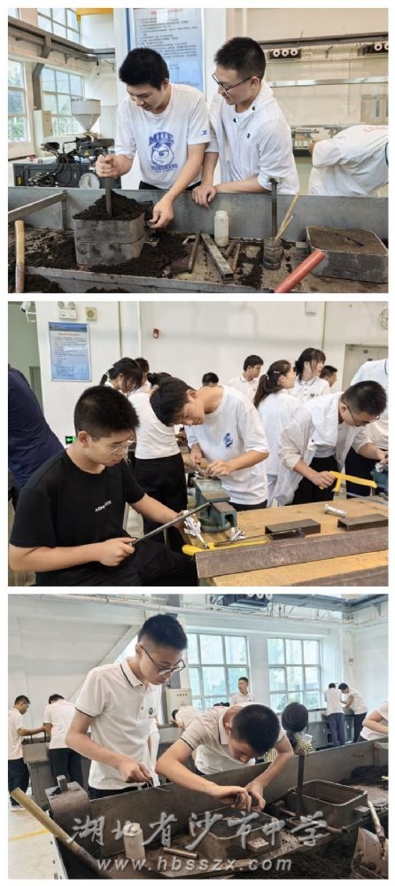 實踐課 在制作過程中,同學們認真聽講,理解每一個制造原理,記住每一步操作步驟,在實踐過程中,向老師和同學們積極請教,初步完成鑄型和澆注步驟。在二十分鐘的等待時間中,鑄件終于成型,接著,利用銼刀、鋸子、鑷子等工具對鑄件進行打磨,完成了制造的全部過程。