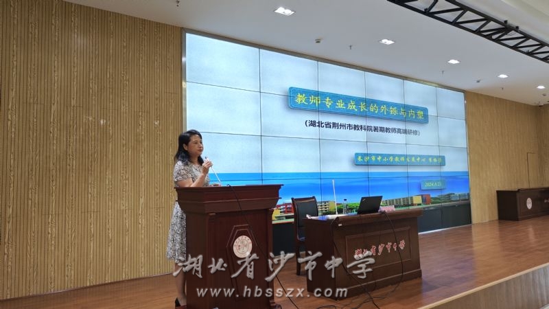 沙市中學黨委副書記、校長徐善慧致歡迎辭 沙市中學黨委副書記、校長徐善慧代表學校對湖南長沙的教育專家和沙市中學教聯體學校老師表示熱烈歡迎。徐善慧指出強教必先強師,要做“四有”好老師,希望參加培訓的老師們認真聆聽和內化吸收專家們講授的精彩內容,做新時代教育教學的引領者和踐行者。