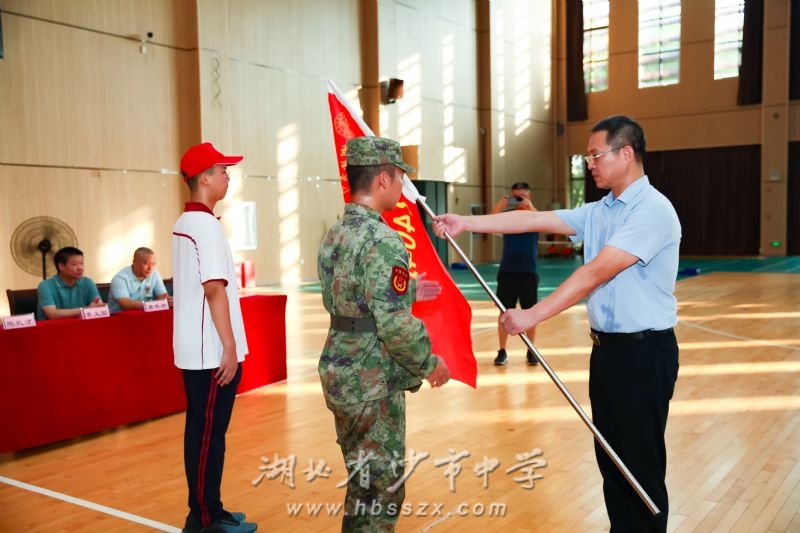 黨委書記熊禮才鄭重地為各班授旗,各班班長(zhǎng)在教官的陪同下依次接旗。班旗預(yù)示著責(zé)任與使命的傳遞,飽含著學(xué)校對(duì)同學(xué)們的殷切期望,化為力量的源泉。