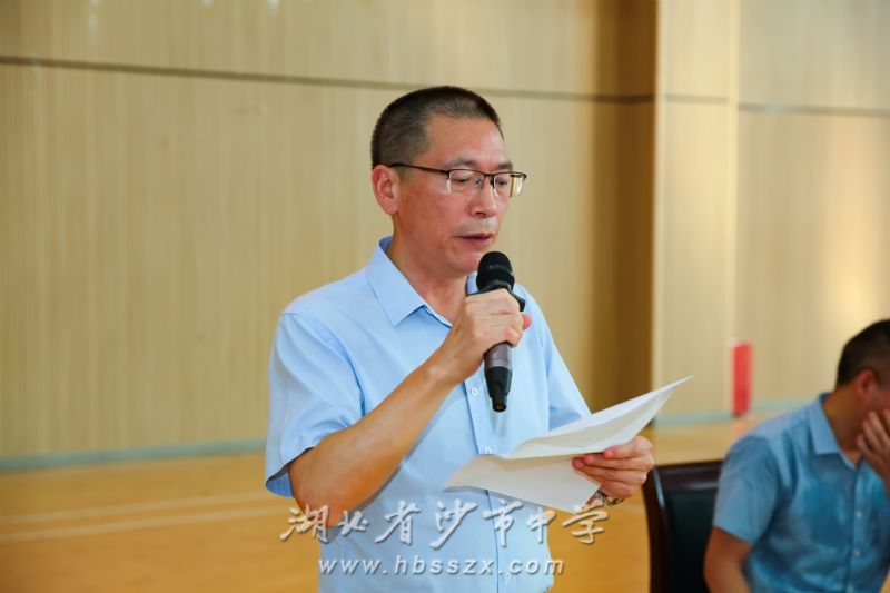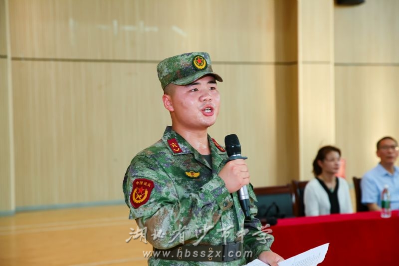 黨委委員、副校長(zhǎng)胡直發(fā)表軍訓(xùn)動(dòng)員講話。他介紹了沙市中學(xué)的校園文化和輝煌成就,鼓勵(lì)同學(xué)們通過軍訓(xùn)“立正”身心,鑄就鋼鐵般的體魄和意志,繼承與發(fā)揚(yáng)“上善若水、自強(qiáng)不息”的習(xí)坎精神。