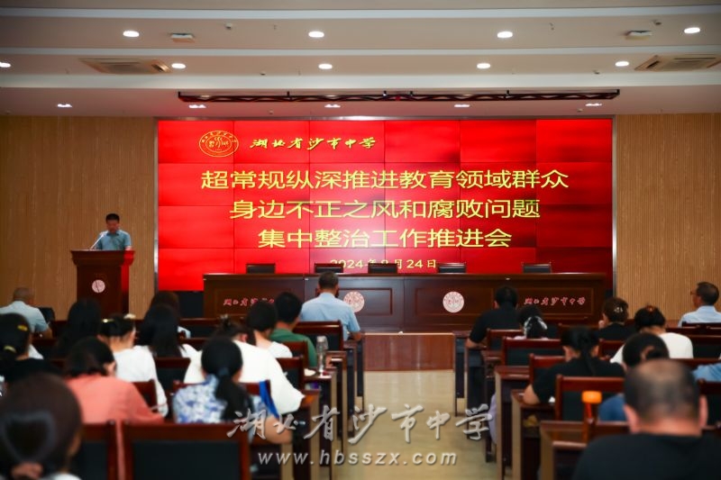 會議現場 8月24日上午9時,沙市中學全體教職員工齊聚學校綜合樓二樓會議室,參加2024-2025學年度上學期第一次教職工大會。會議由學校辦公室主任張珺主持。
