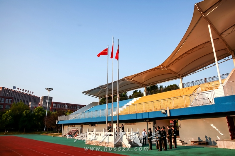 雄壯激昂的國歌,吹響了新學期的號角;冉冉升起的紅旗,點燃新學期的希望。五星紅旗和沙市中學校旗迎風飄揚,全體師生肅立,向國旗、校旗行最誠摯的注目禮。