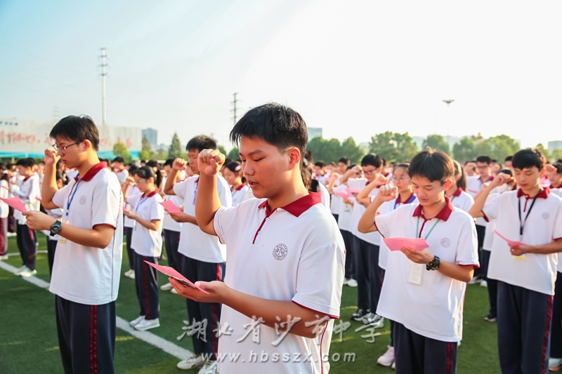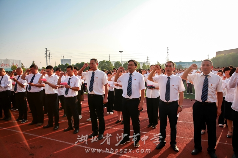 全體教師莊嚴宣誓 全體教師在黨委副書記、紀委書記李義國帶領下宣誓:忠誠人民的教育事業,忠于湖北省沙市中學。履行教師神圣職責,弘揚學校習坎精神。敬業樂群,愛生善教;終身學習,勇于創新;淡泊名利,志存高遠。鑄教師高尚人格,做學生良師益友。為學生的終身發展,為學校的美好明天,為中華民族的偉大復興,我愿奉獻全部智慧和力量!