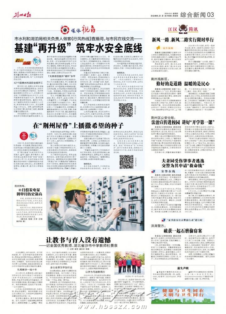 《荊州日報》2024年9月5日報道全國優秀教師、沙市中學教師杜景泉的事跡