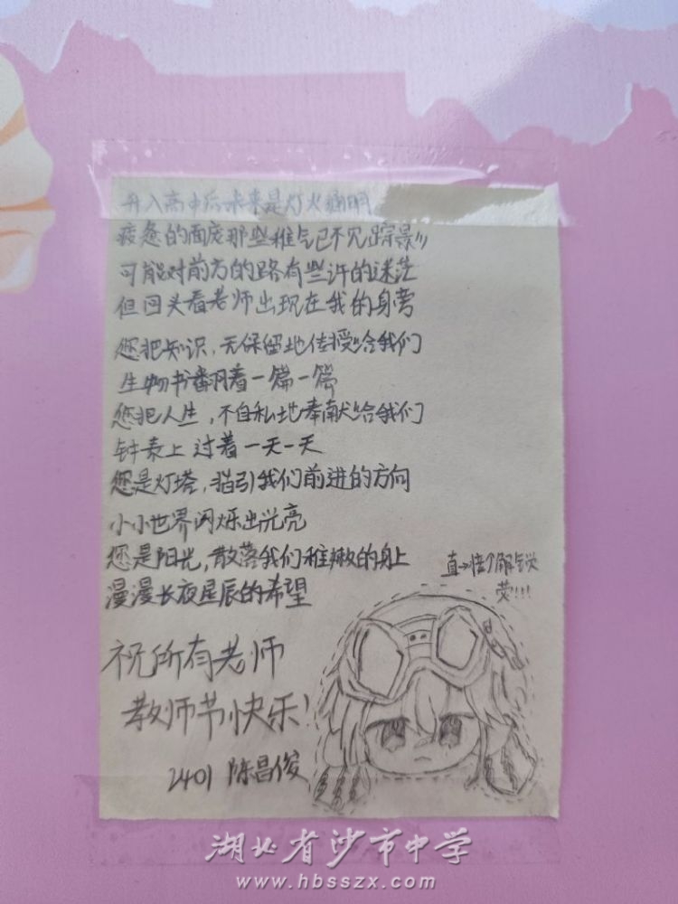 “老師,您就像一盞明燈,照亮我前行的道路。”“感謝您用知識的鑰匙,為我打開了智慧的大門。”“每一滴汗水都是您對我們的期望,我們會用努力回報您的辛勤。”……一句句簡單卻真摯的話語,如同溫暖的陽光,穿透了紙張,直抵老師們的心田。
