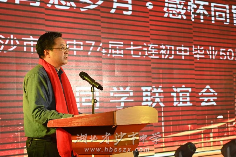 沙市中學黨委副書記、校長徐善慧先生蒞臨現場并致辭。徐校長在發言中高度贊揚了74屆校友們在過去半個世紀中在社會各界取得的成就,對他們在各自領域為社會做出的貢獻表示敬意,并強調了校友力量對學校持續發展的重要性。他同時表達了對校友們的深切關懷和對未來的美好期許。