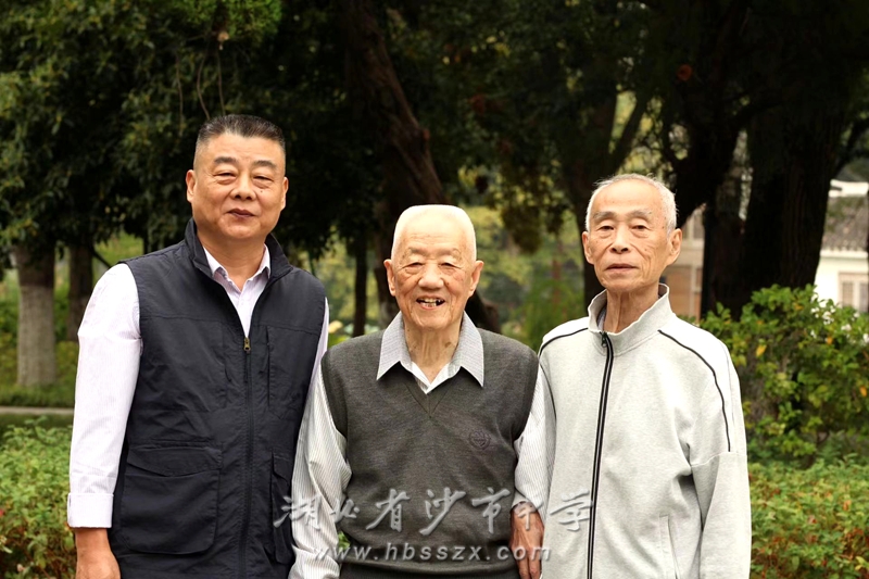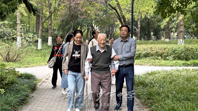 黨委副書記、校長徐善慧攙扶退休特級教師吳國器