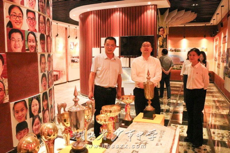 調(diào)研組一行在學(xué)校黨委書記熊禮才和黨委副書記、校長徐善慧的帶領(lǐng)下,通過實(shí)地考察校史館和團(tuán)員活動室等教育活動陣地,了解學(xué)校的辦學(xué)歷史、校園文化、品牌特色及歷年所獲榮譽(yù)等情況。其間,熊燃書記注意到陳列的“2015年全國五四紅旗團(tuán)委”的獎牌,特別指出這是一份來之不易的榮譽(yù),也是沙市中學(xué)過去共青團(tuán)工作成績的寫照。