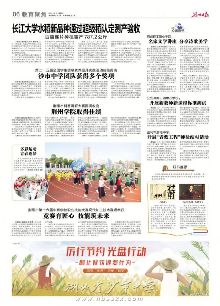 《荊州日?qǐng)?bào)》2024年10月16日?qǐng)?bào)道我校學(xué)子在第25屆全國(guó)學(xué)生信息素養(yǎng)提升實(shí)踐活動(dòng)中獲佳績(jī)
