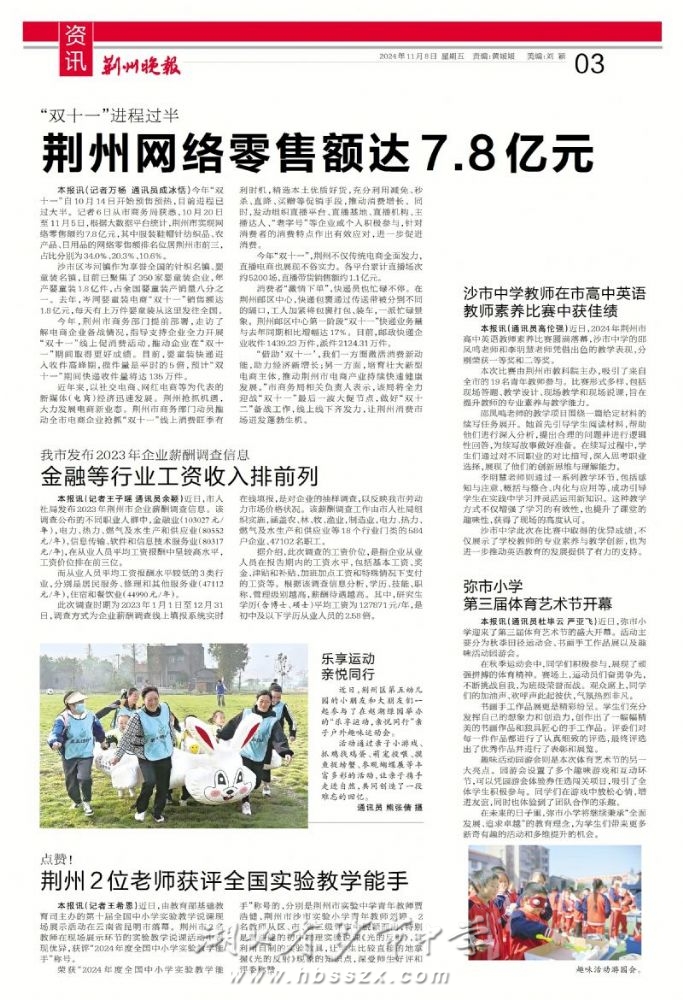 《荊州晚報(bào)》2024年11月8日?qǐng)?bào)道我校教師在荊州市高中英語(yǔ)教師素養(yǎng)比賽中獲佳績(jī)