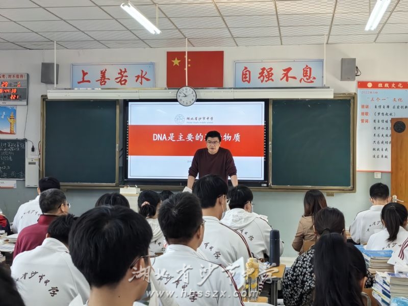 潘磊老師執教生物示范課 全國中學生生物學競賽金牌教練、我校生物學科新高考首席教師潘磊執教了生物一輪復習示范課《DNA是主要的遺傳物質》。潘磊老師通過學生預習案核對糾錯、自主歸納重難點和知識梳理三個過程展開教學,注重基礎知識的落實和學生核心素養的養成。課堂內容層層遞進,通過一系列問題串引導學生逐一突破重難點,教師設計遞進式問題,學生積極思考,主動構建知識體系,體現出師生課堂共建同創、充分合作的教學理念和思想,以達到厘清細微知識點、構建單元知識框架的效果,展現了生物學科首席教師先進的教學理念和扎實的專業功底。