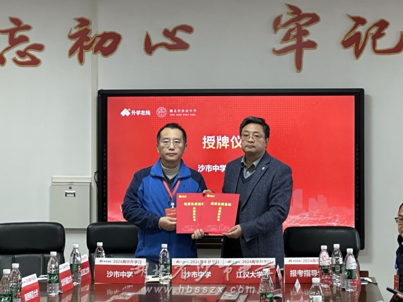 江漢大學(xué)為我校授牌 在眾多高校代表的見證下,西安交通大學(xué)、東北林業(yè)大學(xué)、江漢大學(xué)三所高校為我校授予“優(yōu)質(zhì)生源基地”牌匾和證書。此次授牌儀式不僅是對沙市中學(xué)辦學(xué)理念和教育成果的高度認(rèn)可,也將架起雙方合作交流的橋梁,在未來發(fā)展中促進(jìn)雙方共建共享,共同培育習(xí)坎優(yōu)秀學(xué)子。