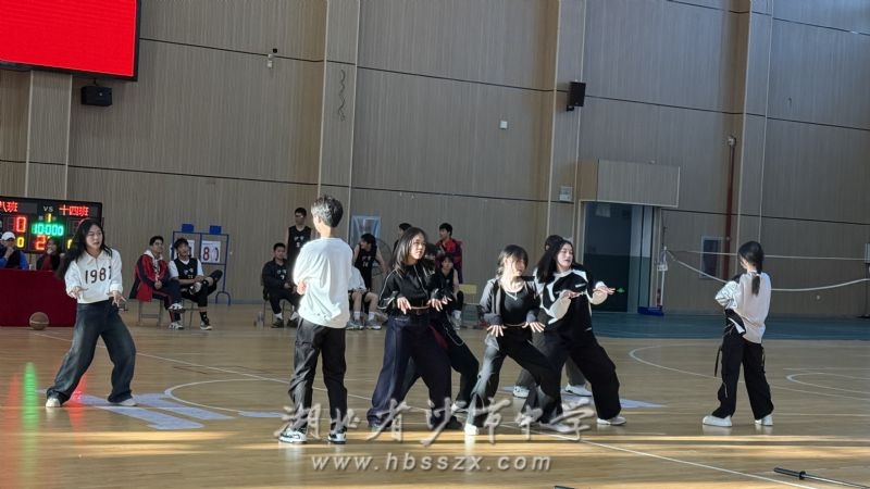 比賽開始前,校舞蹈啦啦隊身著亮麗的服飾,以動感熱辣的舞姿,為觀眾帶來了一場視覺與聽覺的雙重盛宴,歡快的音樂,充滿活力的表演,瞬間點燃了賽場氛圍,為即將到來的比賽注入無限激情。