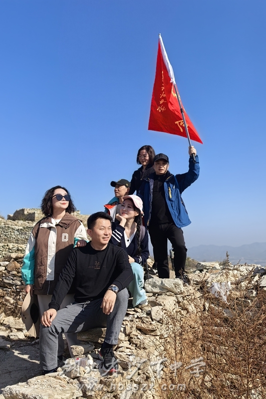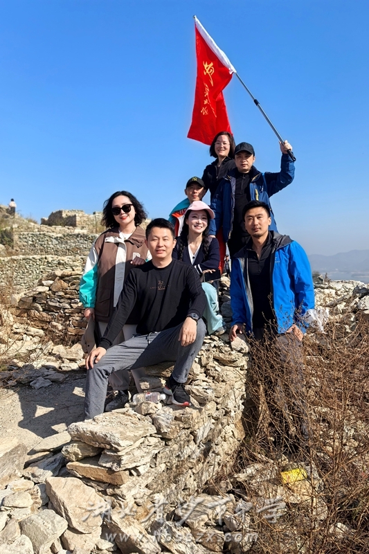 古寨圍城由塊石壘筑,是風的屏障,也是休憩的港灣,石子石塊堆在一起,倚山踞嶺,氣勢磅礴。石寨圍城周長約12公里,占地約1.5平方公里。它的“設計師”是四季與時光,是雨水和沙風。耳聽得山風呼嘯,眼見得古寨連綿,校友們陶醉在龍王尖濃厚的歷史文化氛圍中,仿佛置身于那個烽火連天的古戰場,刀光劍影舞碧斬。