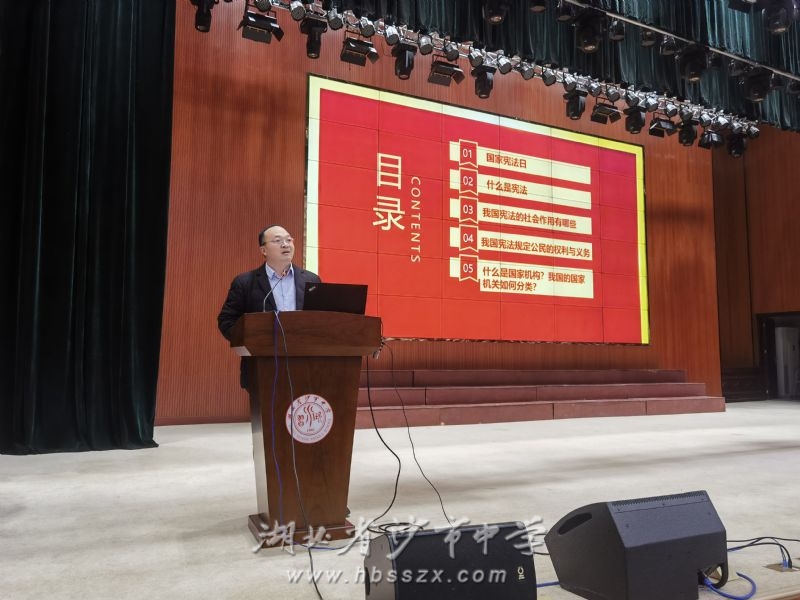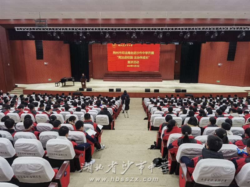 12月4日下午,沙市中學(xué)開展了“憲法進(jìn)校園 法治伴成長(zhǎng)”宣講活動(dòng)。湖北楚恪律師事務(wù)所主任謝良橋律師深入淺出地講解了我國(guó)憲法的核心要義、社會(huì)作用及憲法規(guī)定公民的權(quán)利與義務(wù)等內(nèi)容。活動(dòng)過程中,還穿插了憲法知識(shí)問答環(huán)節(jié),同學(xué)們積極搶答,現(xiàn)場(chǎng)氣氛十分熱烈。