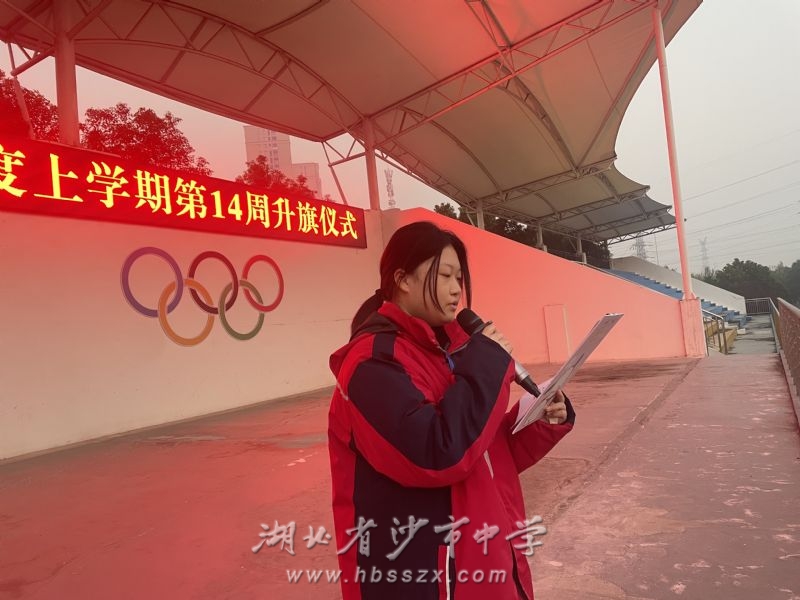 12月2日清晨,沙市中學(xué)舉行了“學(xué)習(xí)憲法 宣傳憲法”主題升旗儀式,拉開了憲法宣傳周的序幕。2410班學(xué)生李恩蘇以“高舉憲法旗幟,弘揚(yáng)法治精神”為主題進(jìn)行演講,她號(hào)召習(xí)坎學(xué)子們心存敬畏,提高法治信仰;以學(xué)廣才,增強(qiáng)憲法意識(shí);依法而行,弘揚(yáng)憲法精神。憲法在清晨的升旗儀式中開啟了對(duì)師生們的法治啟迪,讓法治之光在飄揚(yáng)的旗幟上閃耀。