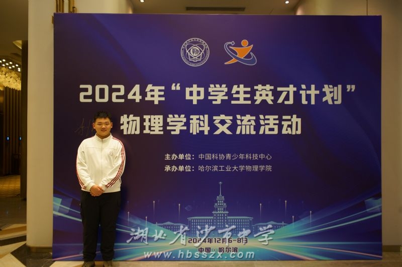 熊思銘同學在哈爾濱工業大學活動現場 其中,沙市中學2302班的熊思銘同學憑借其在“英才計劃”活動中的優異表現,歷經層層選拔,脫穎而出,成為湖北省武漢市外的唯一代表參與了此次活動。