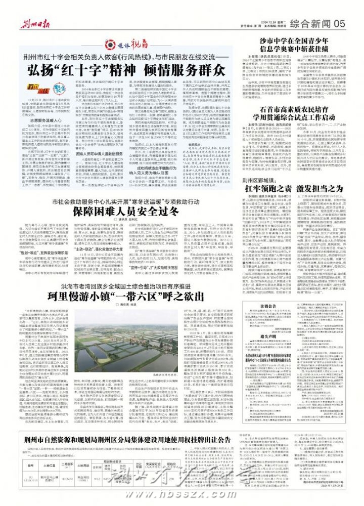 《荊州日報》2024年12月24日報道我校學生在2024年全國青少年信息學奧賽中斬獲佳績