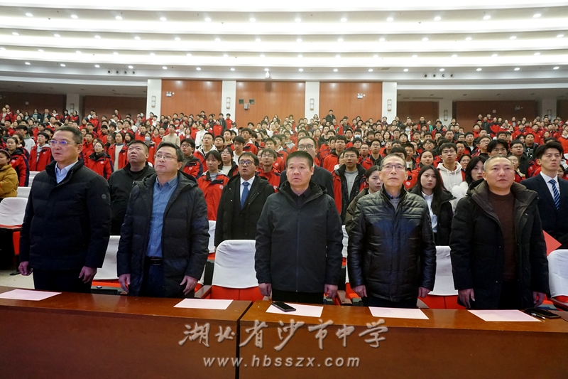 14:00,高一年級的800余名學子,身著火紅的冬季校服,與校級領導、教師們歡聚一堂,現場氛圍熱烈而溫馨。高二年級同學們,通過直播鏈接,在各自教室中共享著這份節日的歡樂與祝福,荊州電視臺、荊州日報客戶端以及沙市中學抖音號同步進行了網絡直播,讓這份喜悅跨越時空,傳遞給更多人。